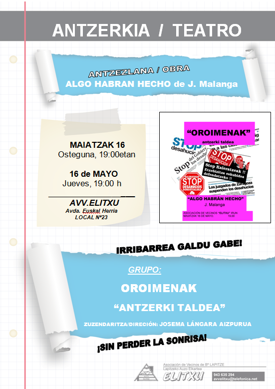 Lokala 10:00etatik 17:00etara bitartean erabiliko da. Ordu horietan, lokalean ohikoak izaten diren jarduerak ez dira egingo.